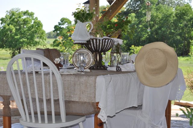 Hi Becky, I love your garden and porch. Looks so inviting! Will you be serving iced tea too? 🙂 I too have one of those white metal chairs…love it. If only I had a pretty porch to put it on! Like your burlap theme and blog.