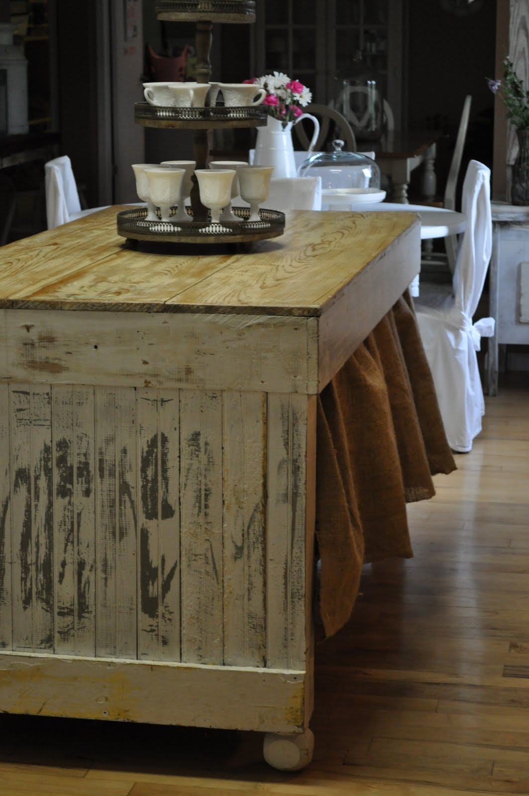 That is an awesome kitchen island. It's so great how you can store appliances underneath so the burlap covers it. It's very me and I just love it.