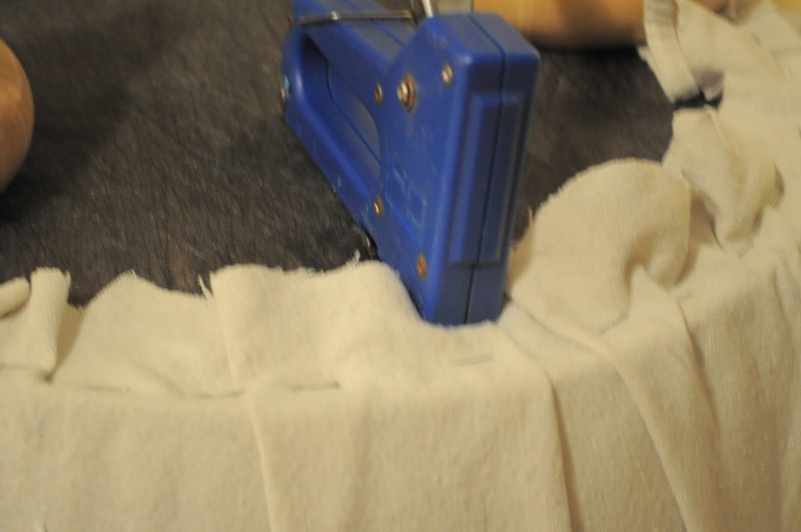I bleached a drop cloth, and staple-gunned it around the bottom.