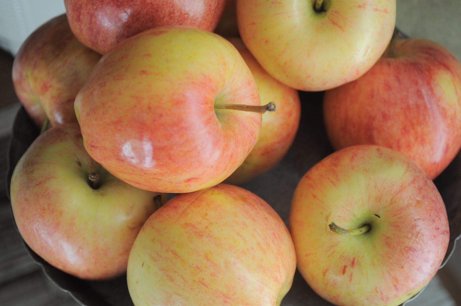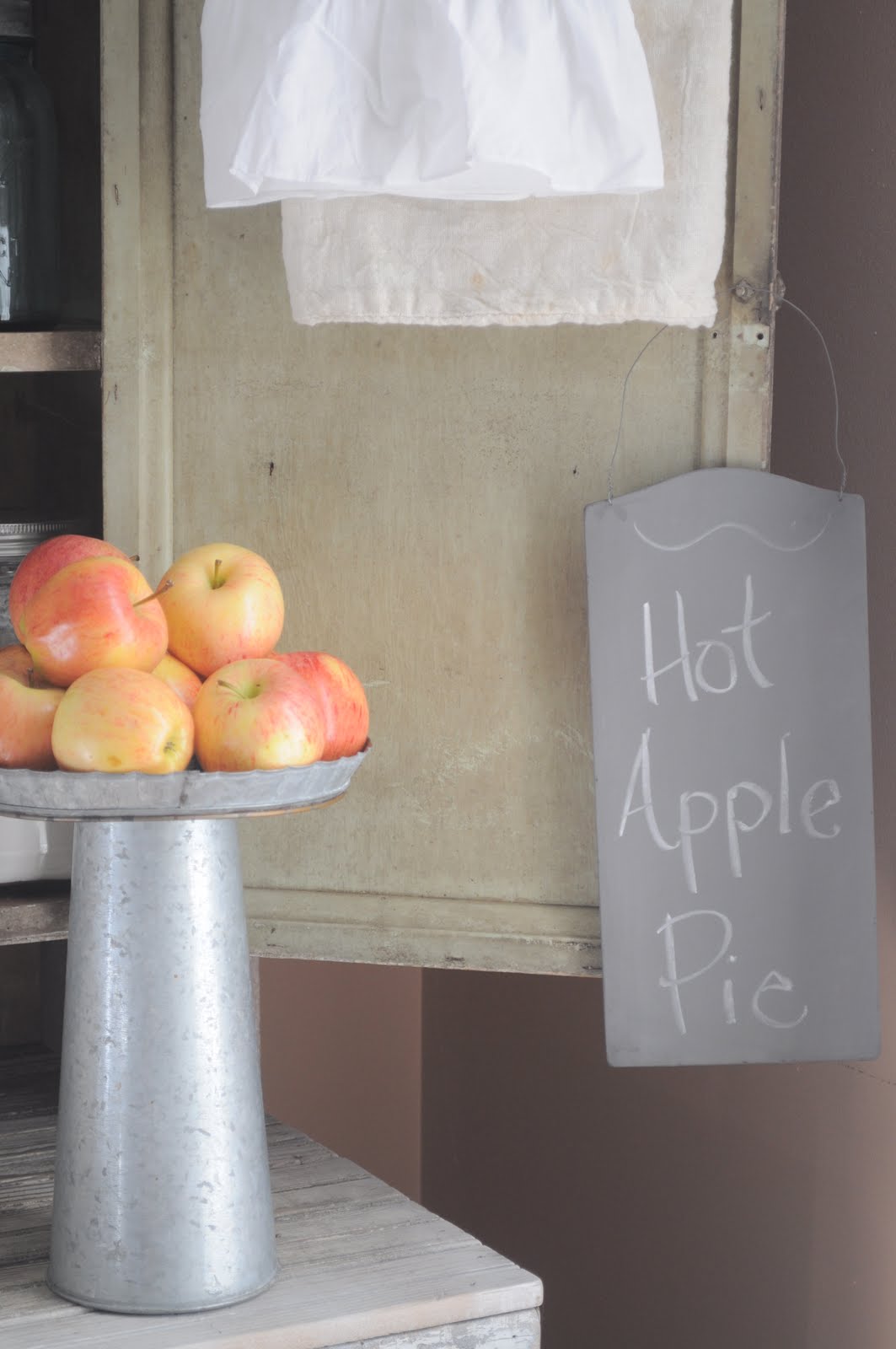Love the hutch and how you've accessorized it! I like your little grey hanging sign! And the pop of color with the apples!! And the galvanized pedestal!
