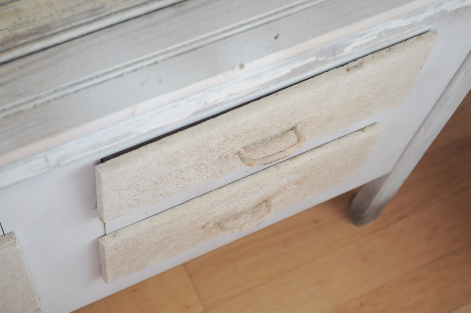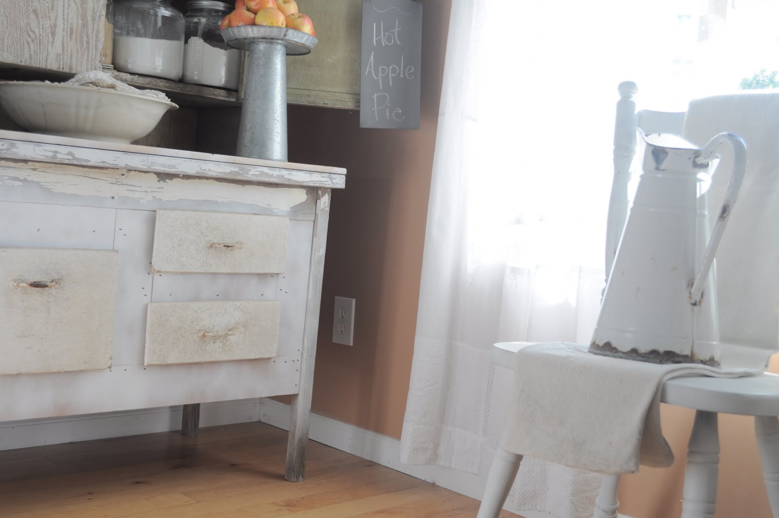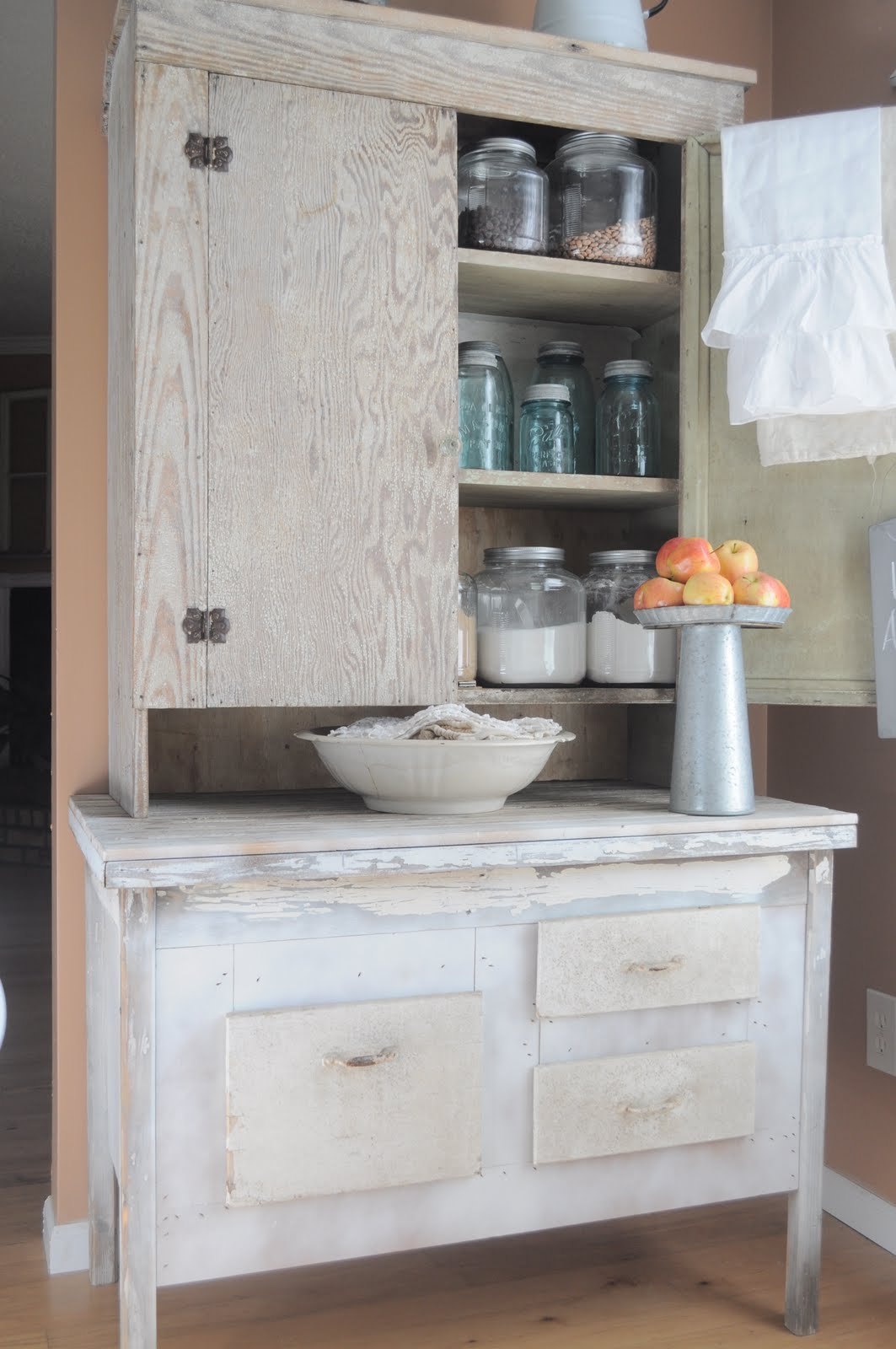 Great rustic, chippy hutch! I LOVE your collection of jars you have stored in it, too… beautiful!