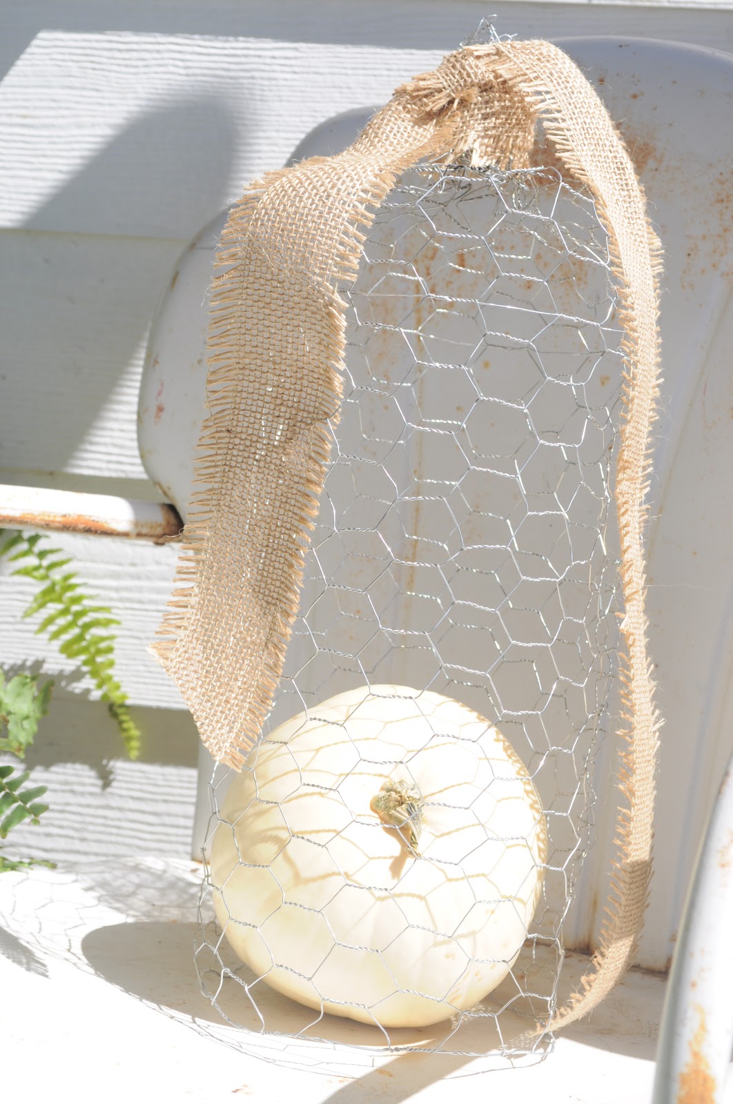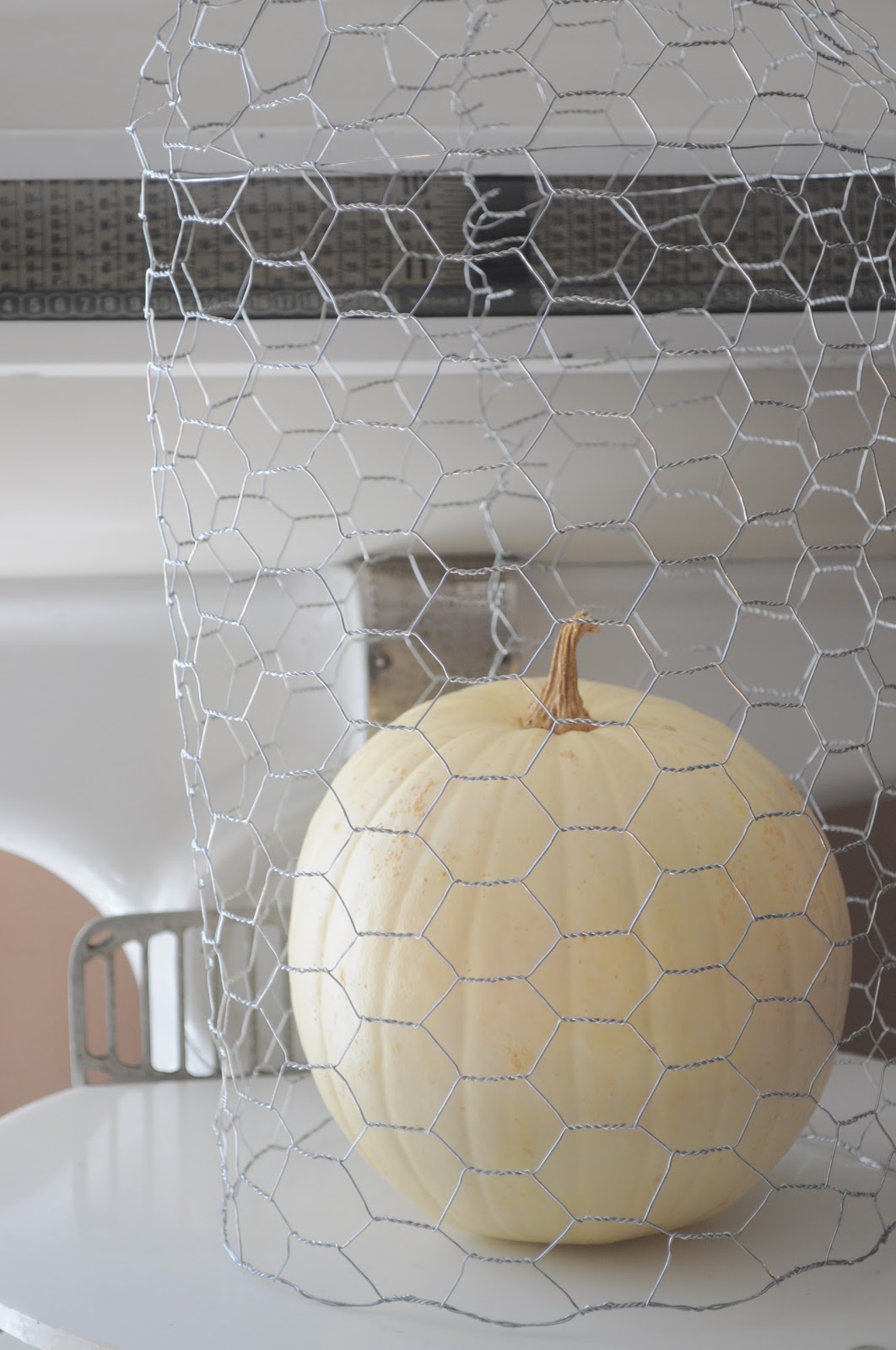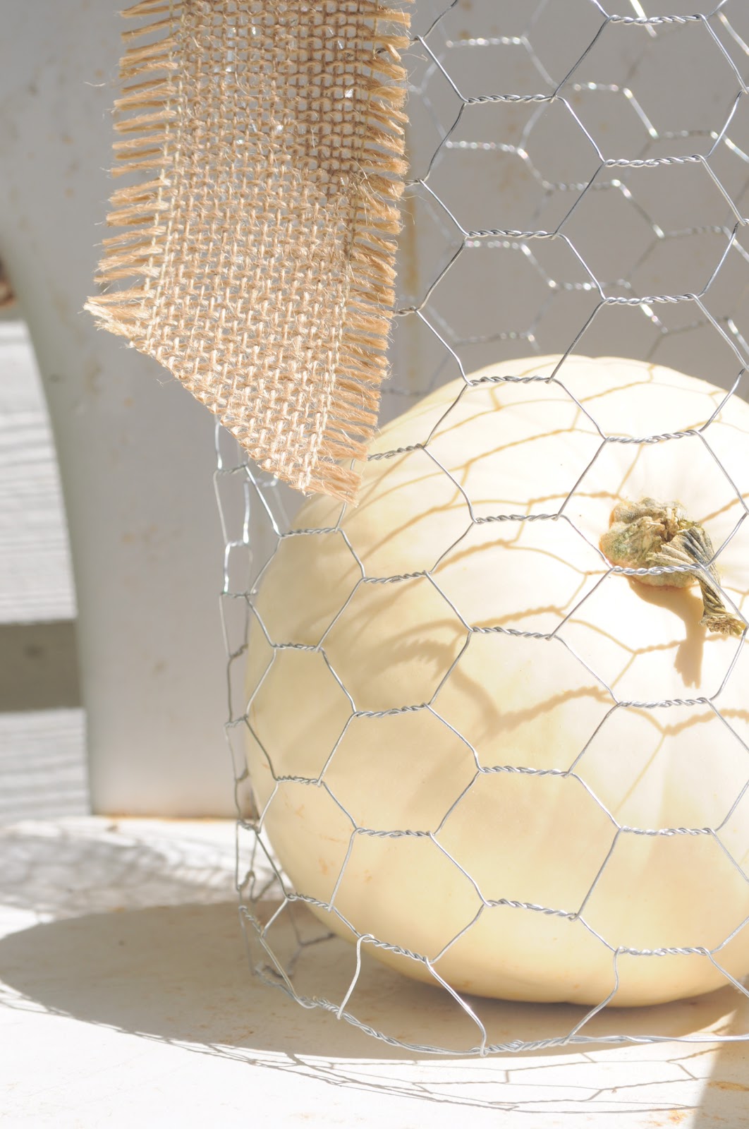 What a wonderful idea. I love the chicken wire cloche and of course, the white pumpkin.