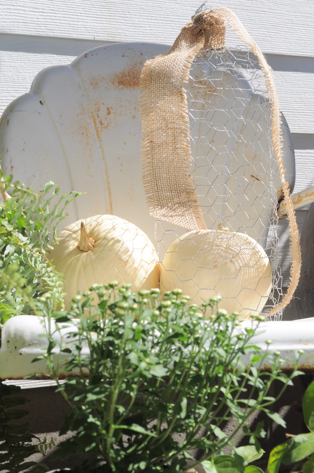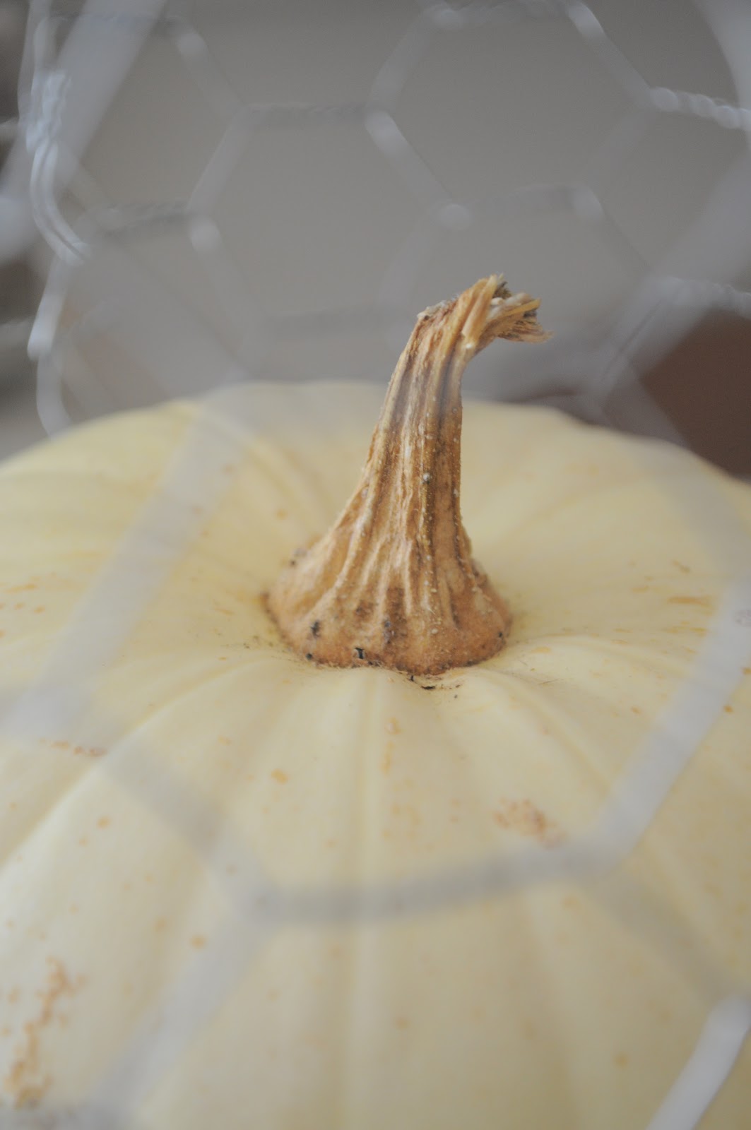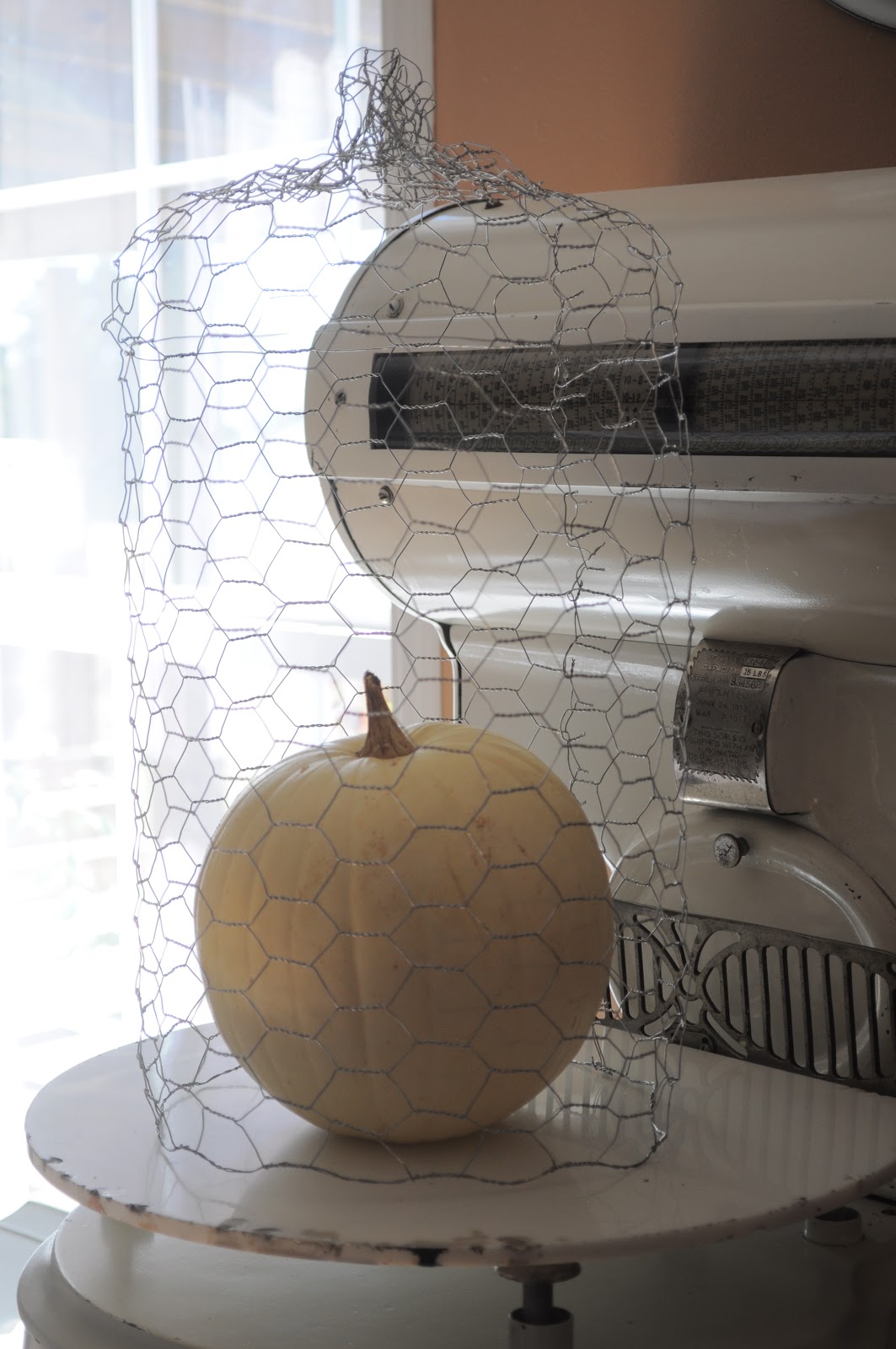 What a wonderful idea. I love the chicken wire cloche and of course, the white pumpkin.