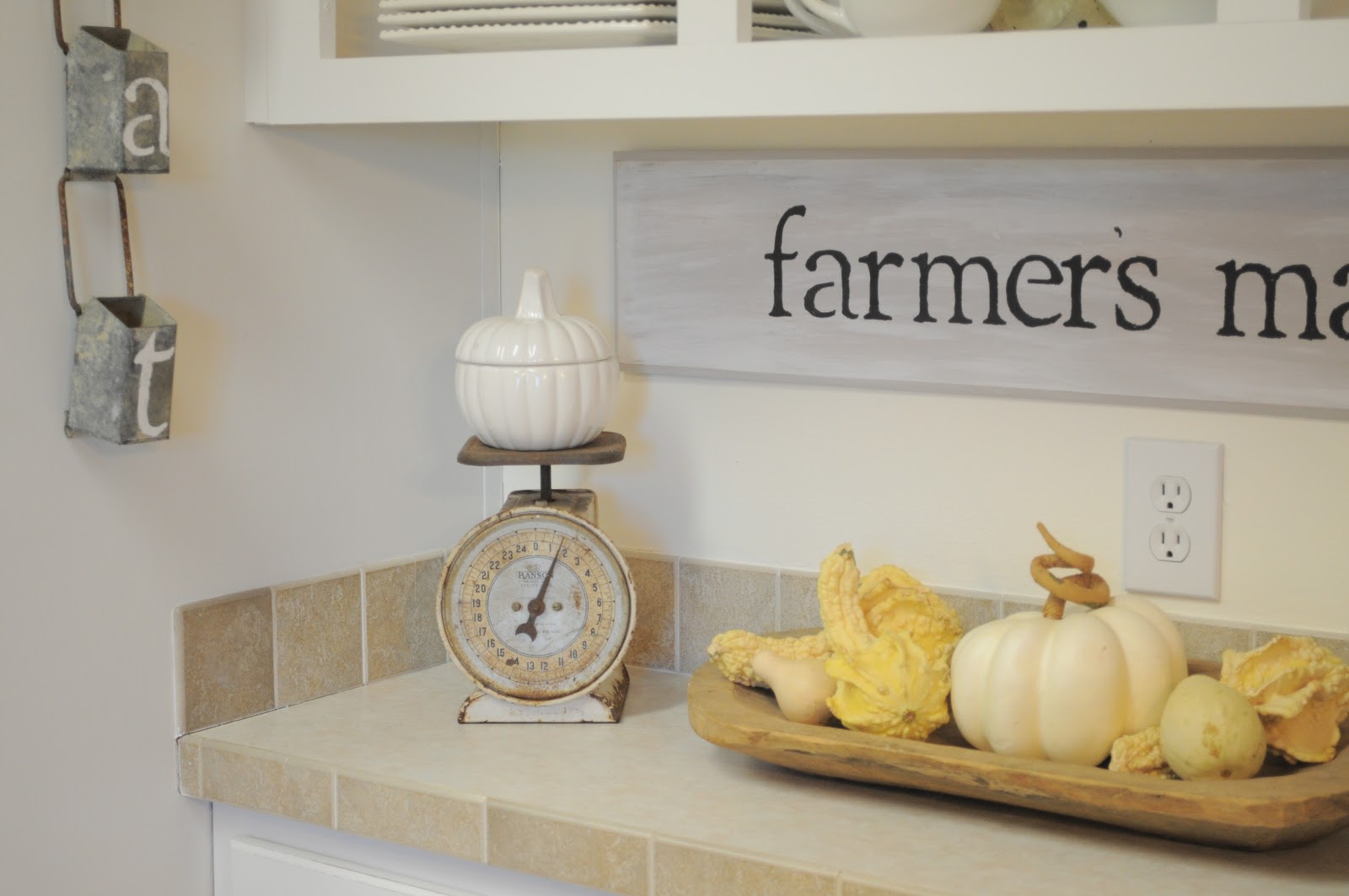 Love it all! I really like your burlap curtains under the sink! Hey since you are in such a painting mood-you should come and paint at my house! LOL Fall seems to always be a crazy busy time around here too-can't seem to slow down till January.