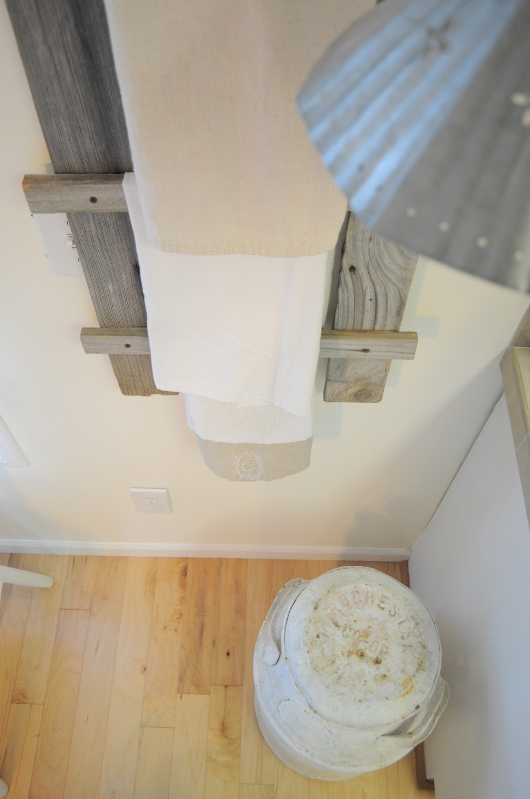 Wow Becky… you really have been busy!! I LOVE the new paint color… great choice!! It's always such a pleasure to see all of the unique and beautiful vintage pieces that you have throughout your beautiful home!! Great idea to build yourself a ladder out of scrap wood until you find one, and the burlap sink skirt and curtain are gorgeous!!