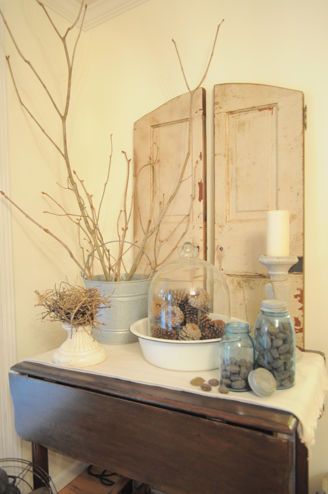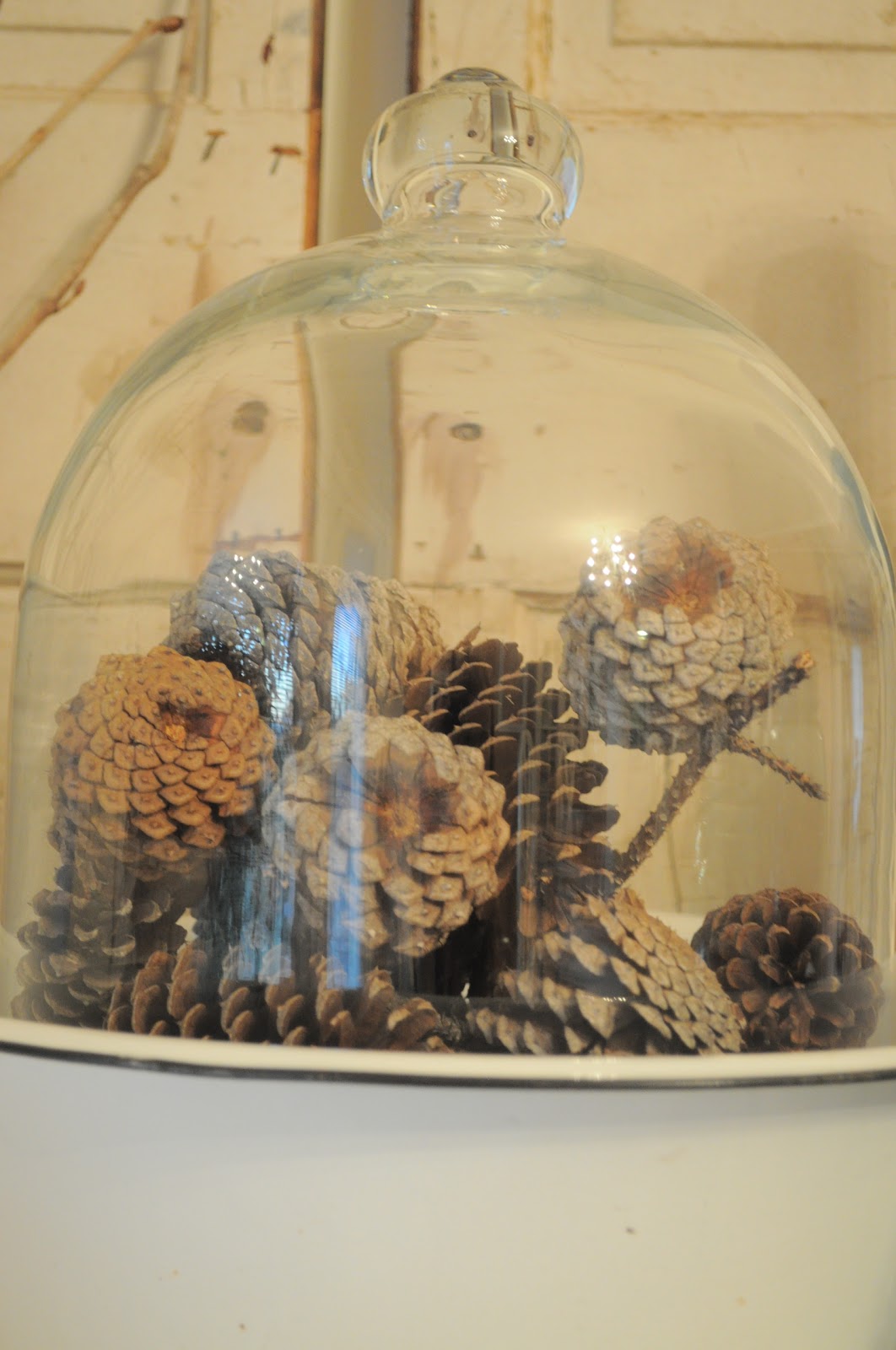Oh my goodness, girl, you've got it goin' on! Love that vignette with the sticks and mason jars and pinecones under the cloche!!!