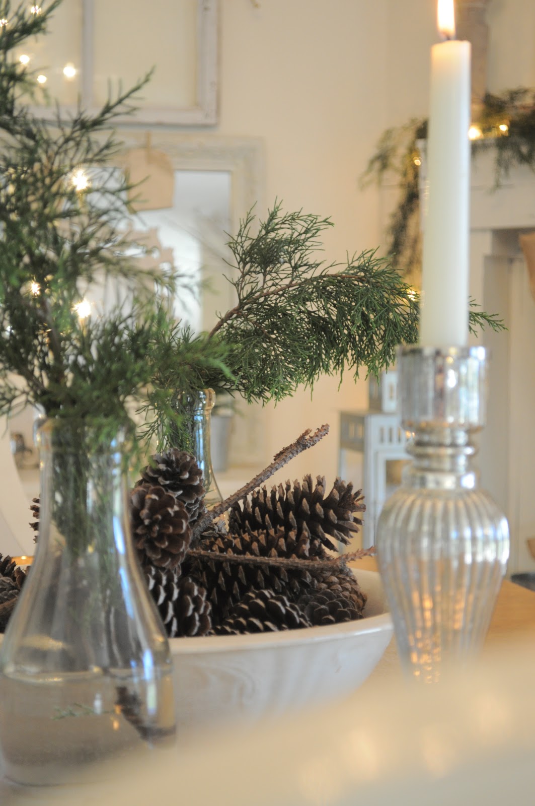 Very pretty! I love the simple natural elements with all your white and a dash of sparkle. Very relaxing and pretty.