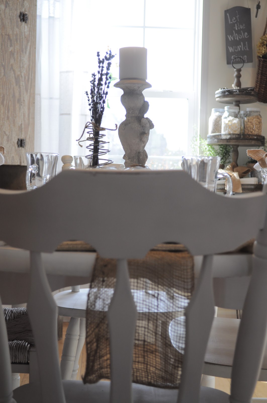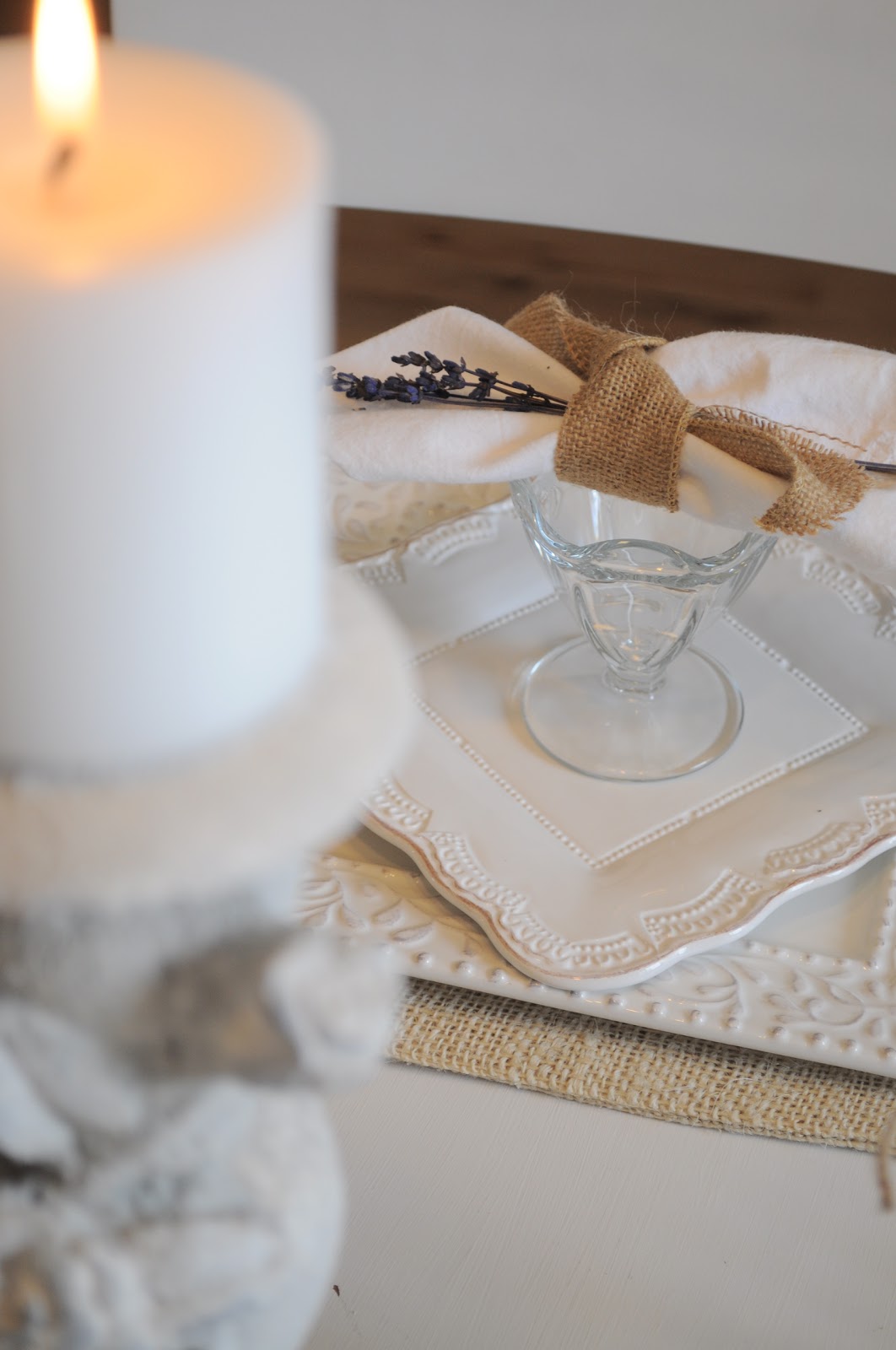 Thank you so much for visiting my post and for you sweet comments. You photos here are wonderful! I love your white dishes and they way you used the burlap with your vintage pieces. However, I am totally loving the lavender! It's one of my favorite smells, how nice to have fresh lavender available!