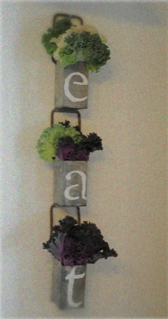 Some vintage clay pots hold the cabbage on the centerpiece.