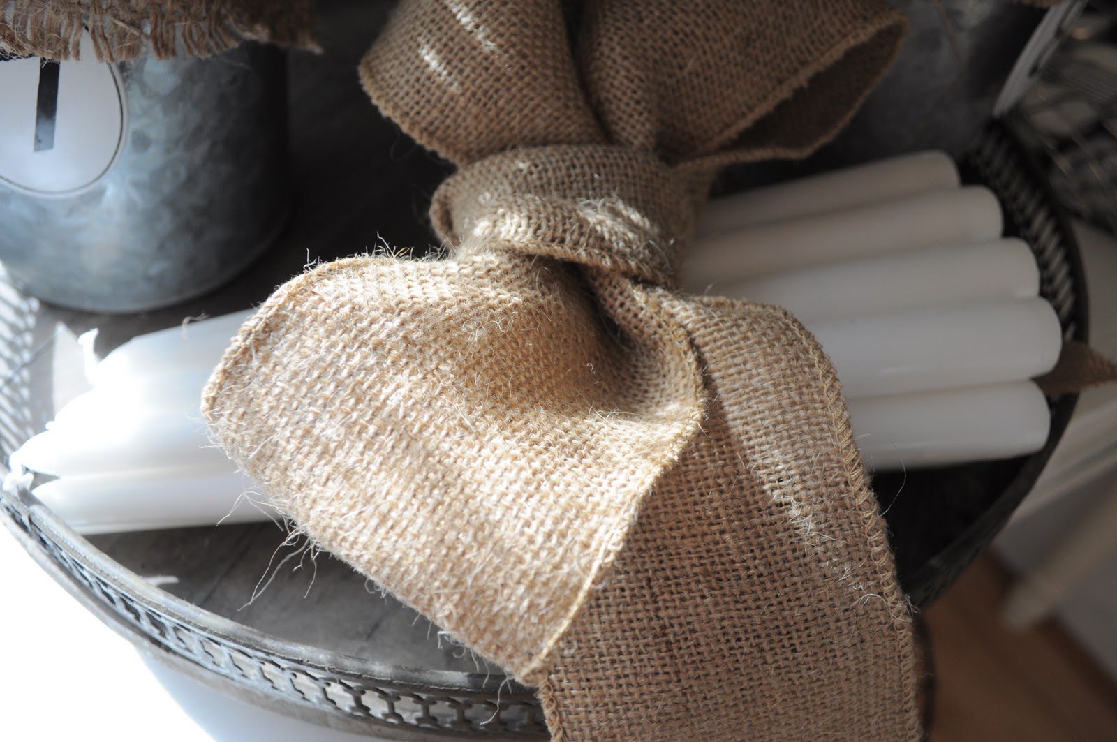 And I wrapped some tapers in burlap ribbon to dress it up a bit.