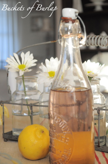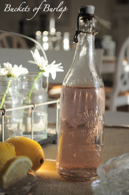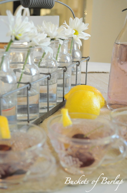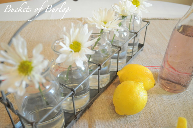 Very pretty! I love the fresh yellow paired with the white. The vintage bottle holder is so adorable.