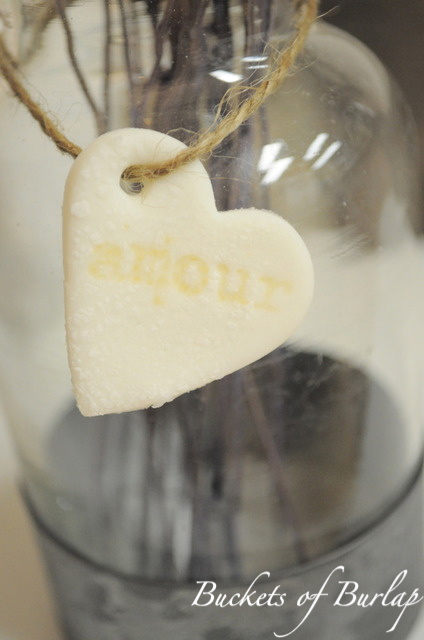 Okay, even though you have it going on so much better than me in the home decor department, I have to tell you how much alike we are. I am also making clay tags and actually they are upstairs drying. I also began praying yesterday about doing an ETSY shop. I even talked to my mom today about doing some sewing for it. I would love to do the shopping for awesome vintage pieces and let her do some handmade things. (since I can't sew) I would love for you to shoot me an email sometime and tell me your thoughts on what you are doing. I have just barely begun researching.