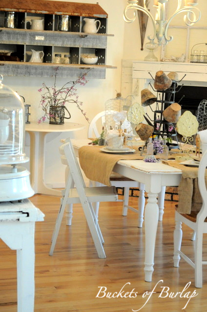 Now I really DO have spring fever after looking at your gorgeous displays. Fantastic job on the table, and I love all that burlap & your lavender!