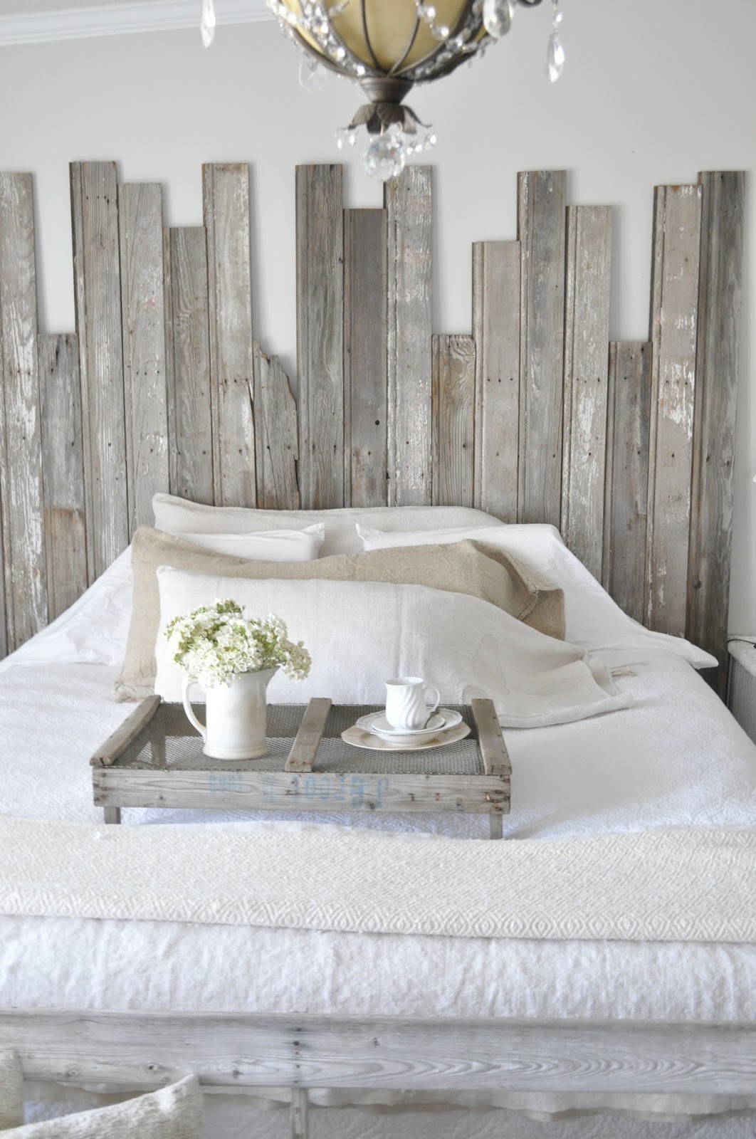 Such as, our headboard…made from reclaimed barnwood. It serves as