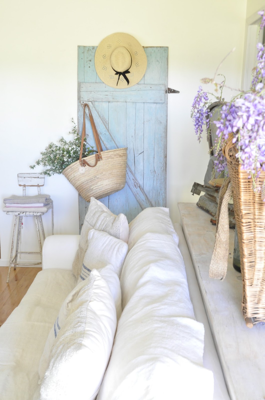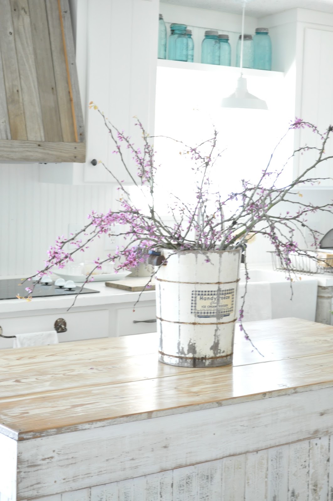 Very pretty! I just love that blue door int he first photo for a pop of spring color! BTW, I almost bought that same white ice cream bucket at a local antique store yesterday! I think it even had the same label on it. I may have to go back and pick it up, because yours looks so pretty on your island!
