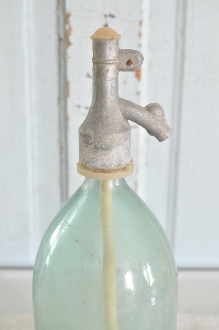 Light Green Vintage Seltzer Bottle with Zinc Top